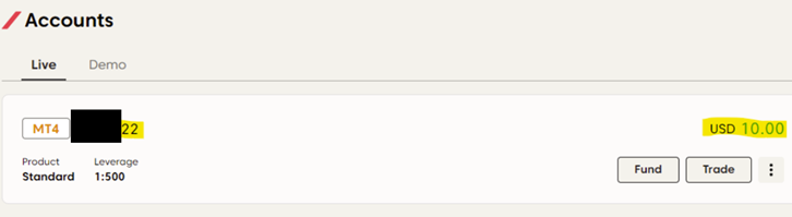 • انتقل إلى لوحة التحكم للتحقق من ظهور المبلغ في حساب MT4/MT5 المحدد.