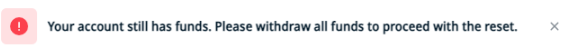 مهم: تأكد من إغلاق جميع الصفقات وسحب الأموال من حساب Axi Select الخاص بك قبل المتابعة. إذا لم يتم استيفاء هذه الشروط، ستتلقى رسالة خطأ ولن تتمكن من المتابعة.
