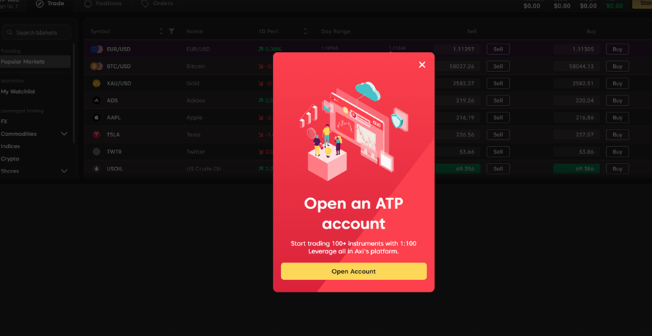لبدء التداول، ستحتاج إلى إنشاء حساب جديد عبر الضغط على زر "فتح حساب".