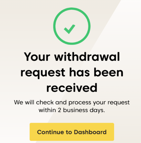 - تحقق مرة أخرى من صحة جميع التفاصيل، ثم اضغط على "طلب السحب" لإرسال الطلب. يرجى العلم بأن معالجة ومراجعة طلب السحب قد تستغرق من يوم إلى يومي عمل.