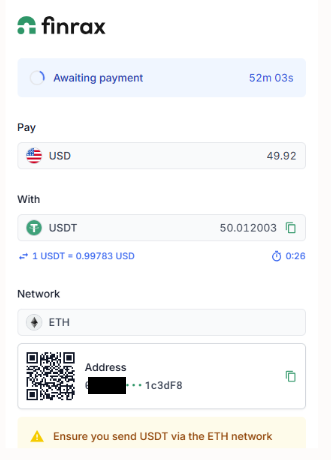 - امسح رمز QR باستخدام تطبيق العملات الرقمية الخاص بك، أو انسخ عنوان المحفظة والصقه في منصة مزوّد الخدمة لديك. يرجى التأكد من إتمام التحويل خلال الإطار الزمني المحدد. كما يُرجى عدم حفظ عنوان المحفظة لاستخدامه لاحقًا، إذ يتم إنشاء عنوان جديد لكل عملية إيداع. استخدام عنوان قديم قد يؤدي إلى تأخير في إضافة الأموال إلى حسابك.