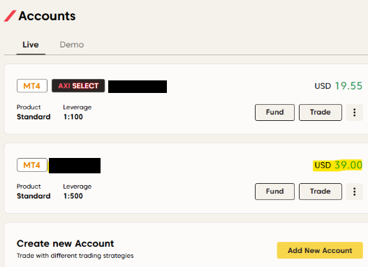 - حدّد حساب التداول MT4/MT5 الذي ترغب في تمويله بالضغط على ""Add Funds"".