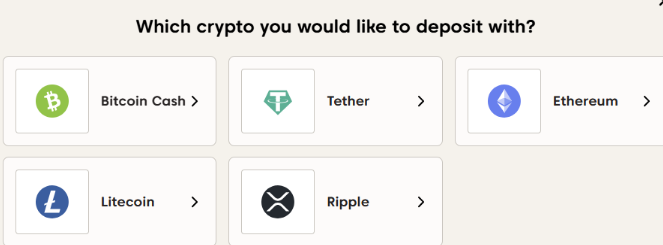 - اختر ""Crypto"" كطريقة التمويل، ثم حدّد العملة الرقمية المفضلة لديك.