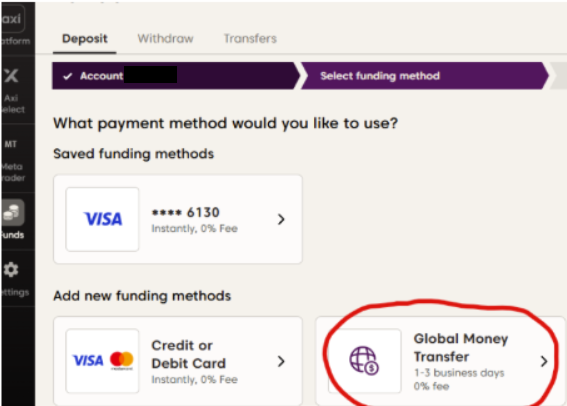 - اختر طريقة التمويل المفضلة لديك: Global Money Transfer (التحويل المصرفي الدولي).