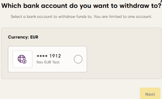 هام: يجب عليك اختيار العملة التي ترغب في إجراء التحويل البنكي بها، وسيزوّدك النظام بأرقام الـIBAN المرتبطة التي يمكنك استقبال الأموال عليها لضمان معالجة السحب بشكل صحيح.