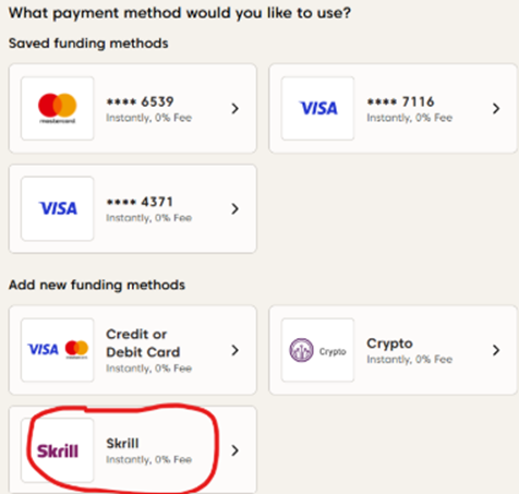 - اختر "Skrill" كوسيلة التمويل.