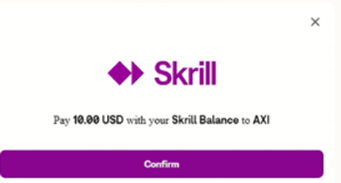 ملاحظة: يرجى التأكد من استيفاء الحد الأدنى للإيداع المطلوب لـ Skrill. لن تتمكن من إتمام العملية إذا كان المبلغ أقل من الحد الأدنى المسموح به.