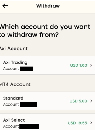 اتبع الخطوات التالية لسحب الأموال من حساب تداول Axi الخاص بك باستخدام العملات المشفرة وتطبيق Axi للجوال: