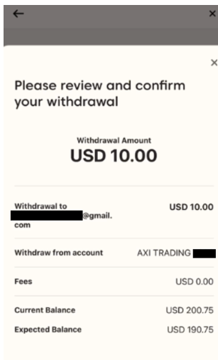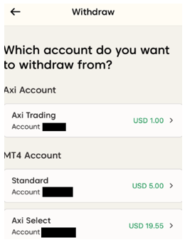اتبع الخطوات التالية لسحب الأموال من حساب التداول الخاص بك لدى Axi باستخدام Skrill عبر تطبيق Axi: