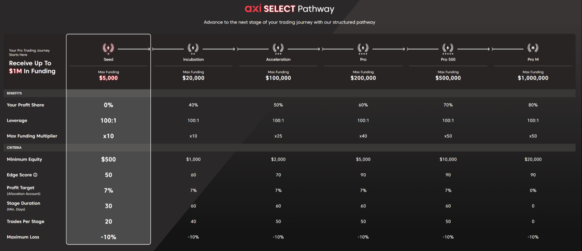 Um die nächste Axi Select-Stufe zu erreichen, müssen Sie alle Aufstiegsanforderungen Ihrer aktuellen Stufe erfüllen und zum Zeitpunkt der Antragstellung keine offenen Positionen haben. Diese Anforderungen sollen eine konstante Leistung und ein effektives Risikomanagement sicherstellen.