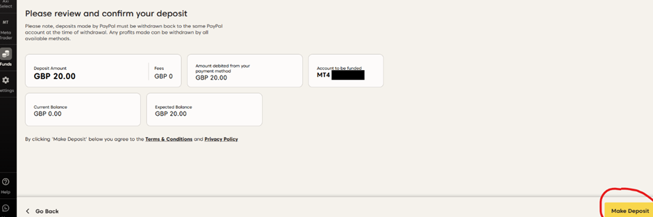 - You’ll then be taken to a confirmation page. Double-check all your details, and once everything is correct, click ‘Make Deposit’ to submit your request.