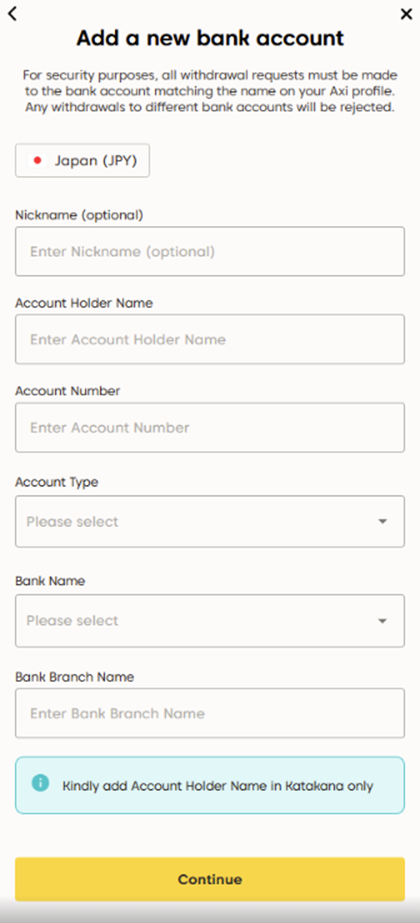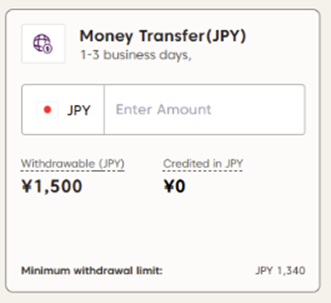 Note: If you have already deposited using Local Money Transfer (Japan), you can only withdraw up to the initial deposit amount due to the Return to Source (RTS) policy.