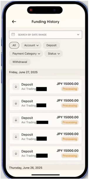 Yes, you can view the funding history for both your live and demo accounts using the Axi Trading Platform app.