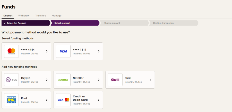 - Select the trading account you want to fund by clicking “Add Funds”.