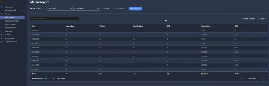 The Media Report helps you track the performance of the media and marketing materials you’ve used to promote your affiliate link. It provides valuable insights regarding which banners, landing pages, or other assets are driving the most engagement and conversions.