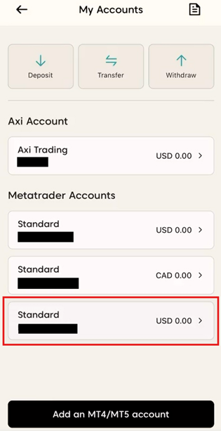 Yes, you can now open new MT4 or MT5 accounts directly through the Axi Trading mobile application, without needing to access the Client Portal. A maximum of five additional trading accounts can be created.