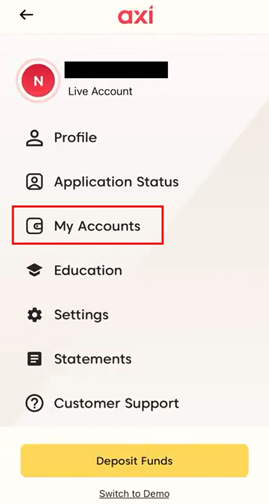 - Tap the “Profile” icon at the top left corner and select “My Accounts”.
