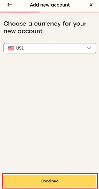- Select your preferred Trading Platform and Account Type, then tap “Continue”.