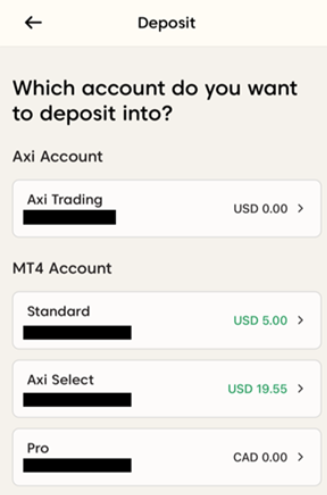 Follow the steps below to deposit funds into your trading account in the Axi mobile app: