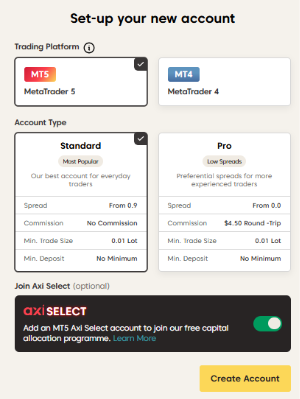 Follow the steps below to register and open your MT4 or MT5 trading account through the Axi Client Portal.