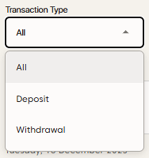 - Date Range: Select a specific period to view transactions within a chosen timeframe.