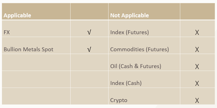 मैक्सिमम अवेलेबल लिवरेज इस बात पर निर्भर करती है कि आप कौन से देश में रह रहे हैं। अपने क्षेत्र और अकाउंट टाइप के लिए मैक्सिमम अवेलेबल लिवरेज का पता लगाने के लिए प्लीज़ अपने अकाउंट मैनेजर या हमारी क्लाइंट सर्विसेज़ टीम से संपर्क करके देखें।
