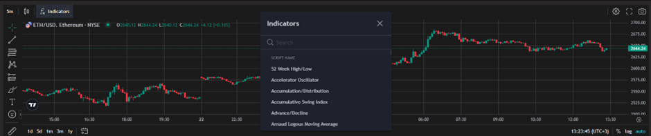 - चार्ट में ऐड किए जाने वाले इंडिकेटर को सर्च कर लें।
