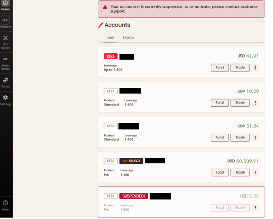 - उस सोर्स अकाउंट को सिलेक्ट कर लें (जैसे MT4, Axi ट्रेडिंग, या फिर Axi Select), जिससे आप पैसा ट्रांसफ़र करना चाहते हैं।