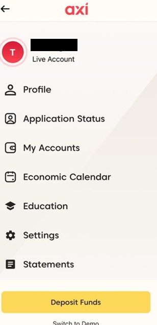 - Axi ट्रेडिंग प्लेटफ़ॉर्म ऐप खोलकर लॉग-इन कर लें।