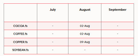 आने वाले रोलओवर्स के लिए डिटेल्ड शेड्यूल, जिसमें BRENT.fs, CAC40.fs, WTI.fs, और कई और कॉन्ट्रैक्ट शामिल होते हैं, के डिटेल्ड शेड्यूल को देखा जा सकता है। इस जानकारी को चेक करने की आम गाइड नीचे दी हुई है।