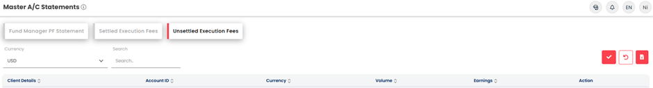 - Unsettled Execution Fees: आप करेंसी के आधार पर फ़िल्टर कर सकते हैं। स्टेटमेंट्स को आप Excel फ़ॉर्मेट में एक्सपोर्ट भी कर सकते हैं।