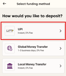 - अपनी जमा विधि के रूप में "UPI" चुनें।