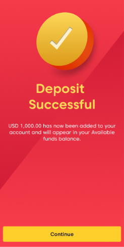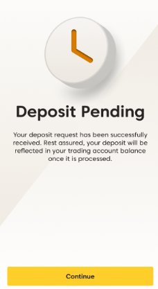- सेव पर क्लिक करने के बाद, आपको "डिपॉज़िट पेंडिंग" सूचना प्राप्त होगी; "कंटिन्यू" पर क्लिक करें।