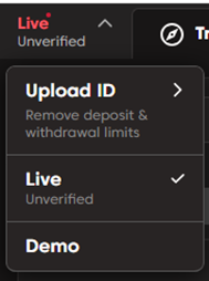 Catatan: Jika Anda hanya memiliki akun demo, Anda tidak akan melihat opsi dropdown.
