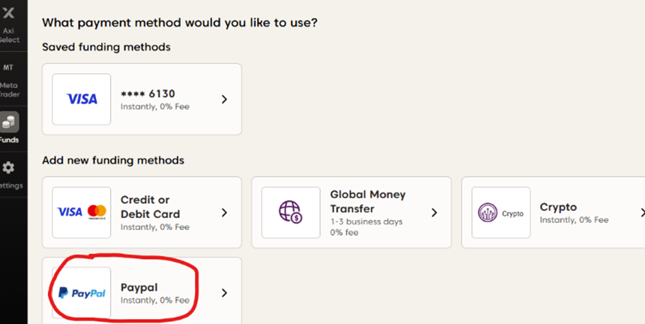 - Pilih metode pendanaan yang Anda inginkan: ‘PayPal’