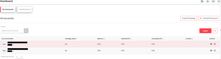 - Klien harus menautkan akun rebate mereka melalui tombol “Tautkan Akun MT4” di dashboard.