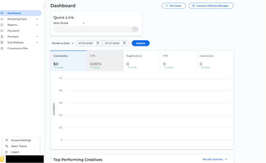Kata sandi Dashboard Affiliate Anda sama dengan yang Anda buat saat proses aplikasi.