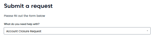 I clienti possono richiedere la chiusura dell’account direttamente tramite i moduli di richiesta online. Per farlo, devono andare al Centro Assistenza e cliccare su “Invia una richiesta”.