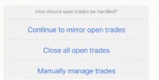 - Se scegli di smettere di copiare un segnale, ti verrà chiesto come desideri gestire tutte le operazioni aperte. Una volta deciso, un pop-up confermerà la “Sospensione della Copia”. Clicca su “OK”.