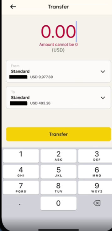 • Soluzione: assicurati di inserire un importo di trasferimento maggiore di zero.