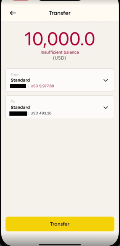 • Soluzione: deposita fondi nel tuo account di trading. Hai bisogno di almeno un account con saldo positivo per trasferire fondi.