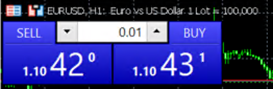 チャートでワンクリック取引ツールを開くには、チャートを右クリックして、「ワンクリック注文」を選択します。または、チャートの左上隅にあるワンクリック取引ボタンをクリックしても有効にできます。