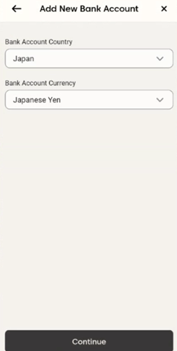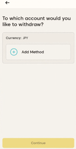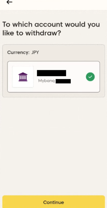 すでに銀行口座を登録しており、元の資金源に出金を行ったことがある場合は、出金に使用する現地送金口座を選択するよう求められます。