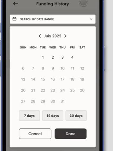 最大365日前までの資金履歴を確認できます。