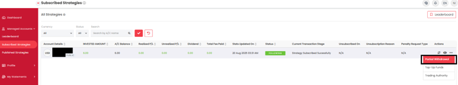 - 購読中のアカウントに未決済の取引があっても一部出金は可能です。