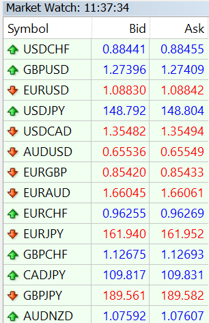 - Vá para a janela "Market Watch" - localizada no lado direito do seu terminal de operações MT4 (versão desktop e web).