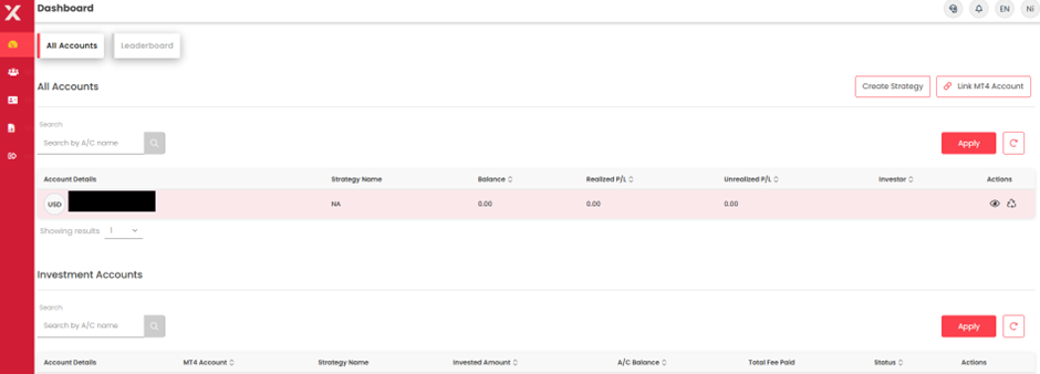 - Para cada conta de investimento PAMM, você verá: