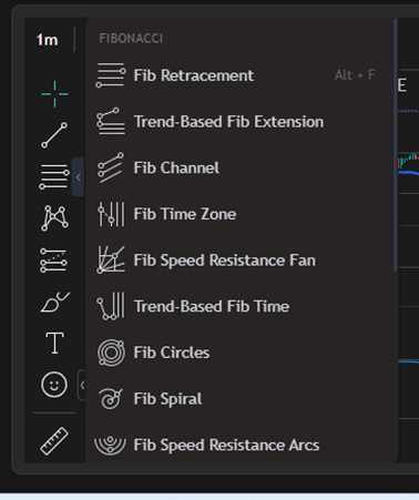 您可以利用圖表左側的繪圖工具來註釋趨勢線、支撐和阻力位、斐波那契回撤以及其他圖形元素。
