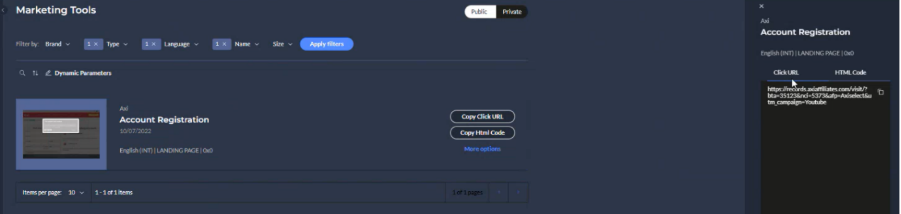 - 前往 Marketing Tools:在 Axi 聯盟夥伴門戶 中,進入「Marketing Tools」區域。